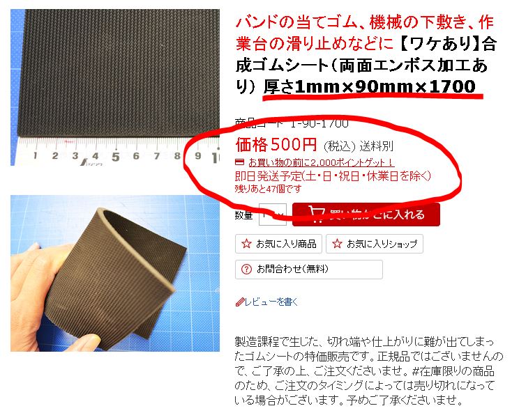 あ、端材はゴムシートドットコムの下記バナーを