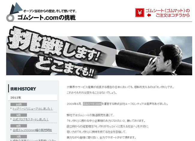 「ゴムシート.comの挑戦」というコンテンツがあります。