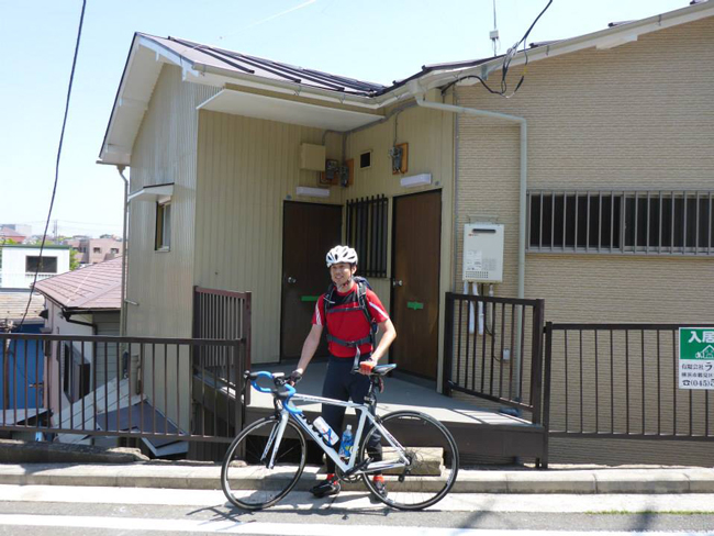 18才の時に住んでいたアパートの前で記念撮影です。