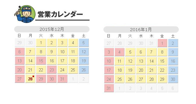 年末は12/28まで営業、年始は1/5から営業いたします。