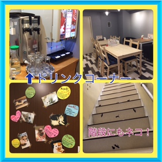 お店(2階)までの階段に猫のシールが貼ってあったり