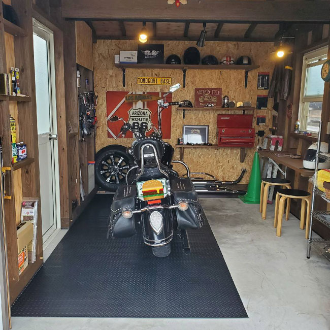 バイクガレージ マット設置の事例写真