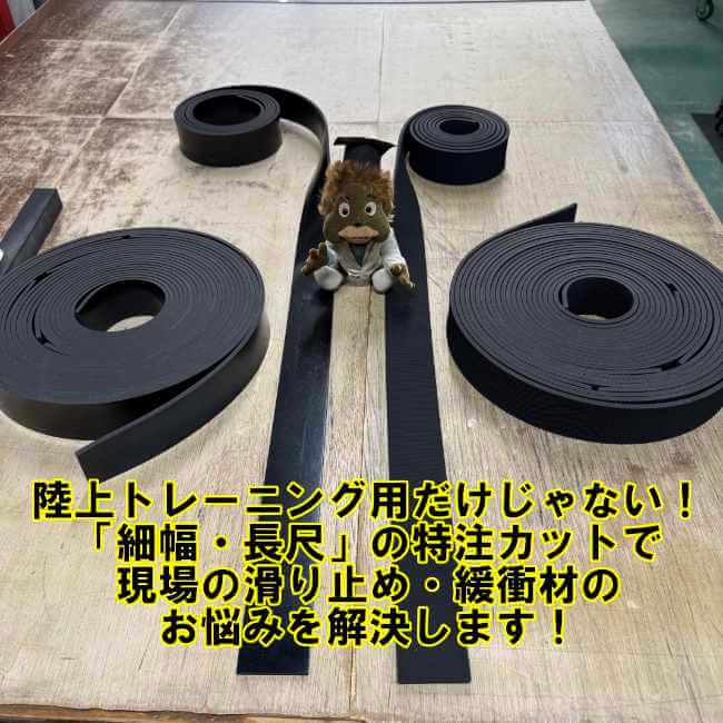 陸上トレーニング用だけじゃない!「細幅・長尺」の特注カットで現場の滑り止め・緩衝材の悩みを解決します!