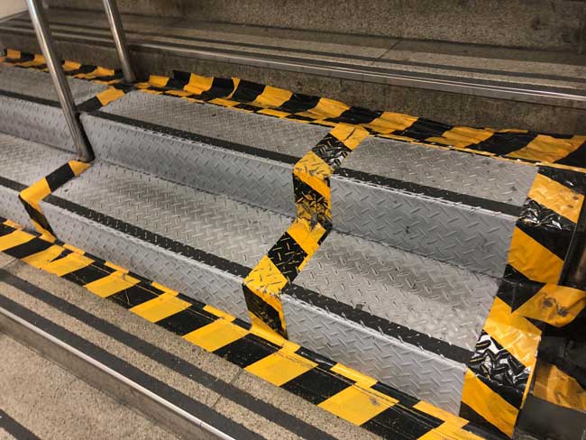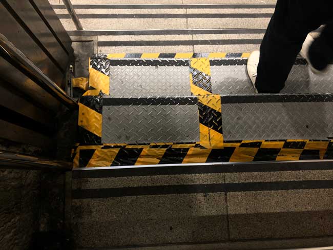駅の階段で縞板を発見しました。