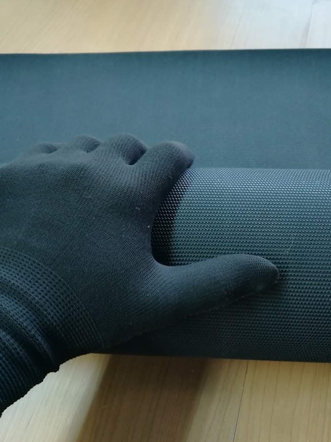 ウチらはゴムシートのカット売りをする際、カットする作業台を特別に滑りやすくしてあるのですが、それでもこのエンボスは滑りにくいのですw