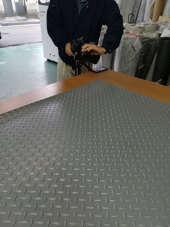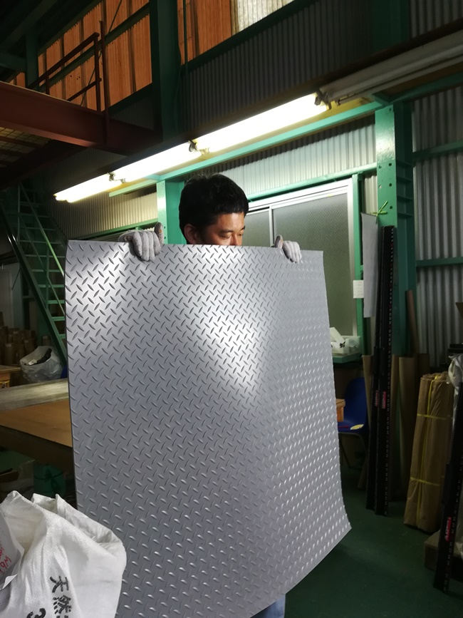 鉄板のシマ板だと、雨が降ると案外と水で滑ったりしますが、コイツは正真正銘のゴムですから安心ですねー。