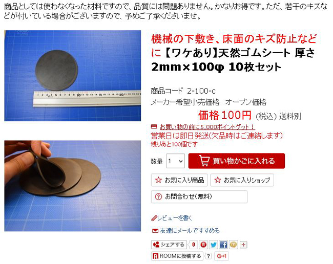 機械の下敷き、床面のキズ防止などに 【ワケあり】天然ゴムシート 厚さ2mm×100φあります
