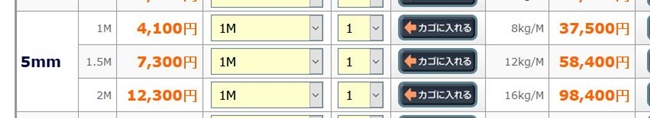 ボク「ですね。買っていただきやすいように一律単価っすよね。ただ、10mとか20mのキリのいい長さをご注文いただいた場合は、僕らがカットしたりする手間がないのんで割引価格が適用されたりもしますよね。」