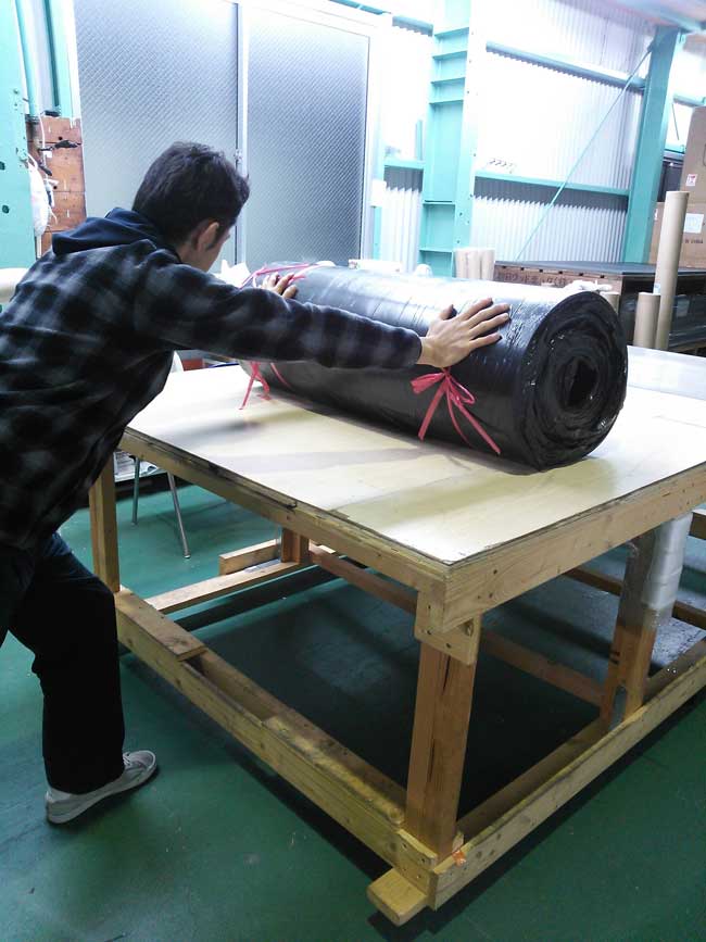 私たちが扱っているゴムシートは非常に重量がある物ですが、