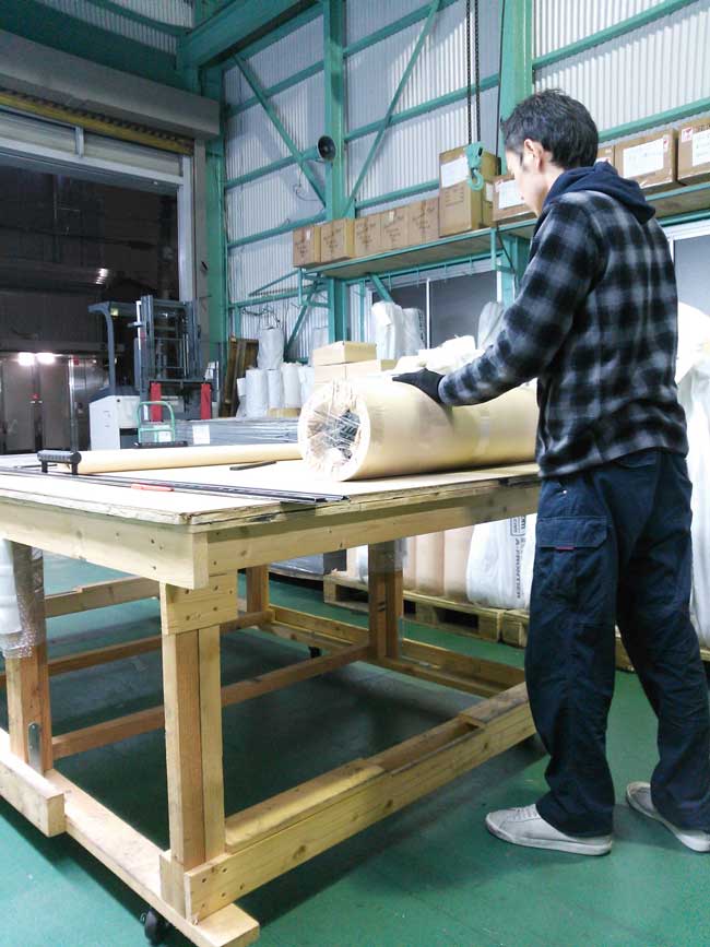 毎日、お客様からご注文いただくゴムシートをカット梱包して、