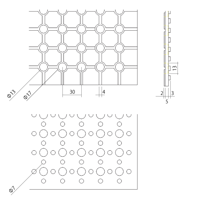 穴の大きさ、穴の間隔、厚みの内訳などパッとみてご理解いただけると思います。