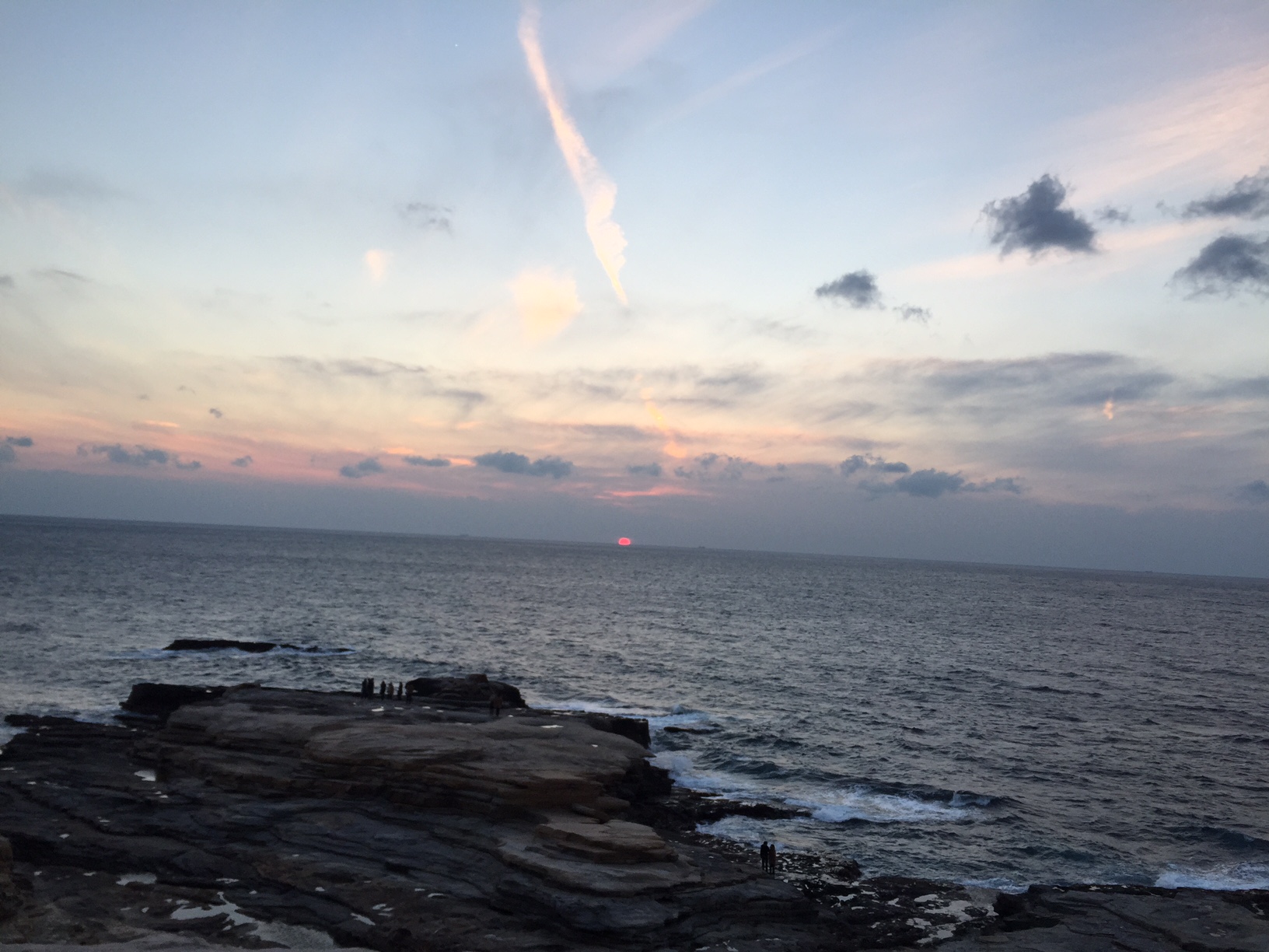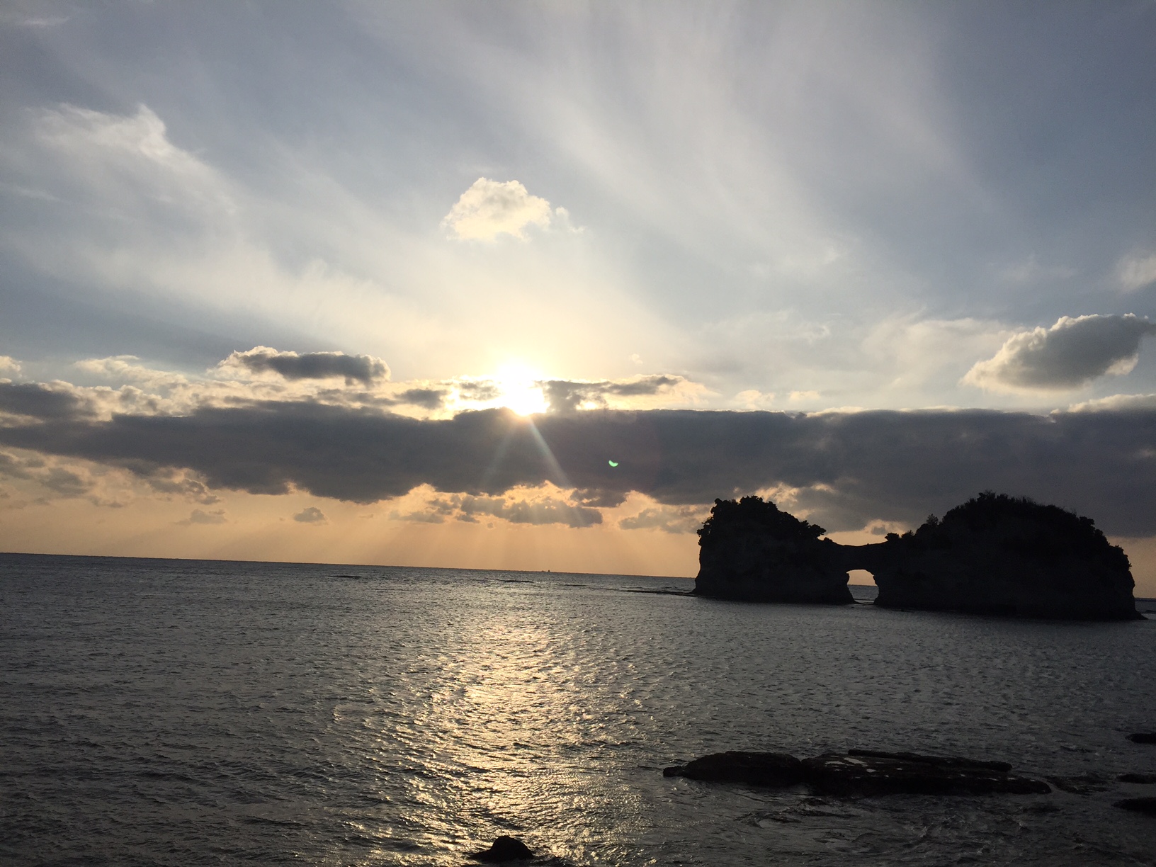 ちょうど太陽が地平線上にあり、沈む瞬間が見られました。