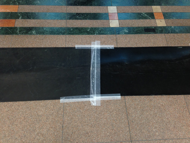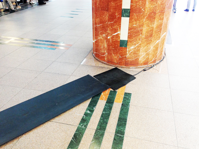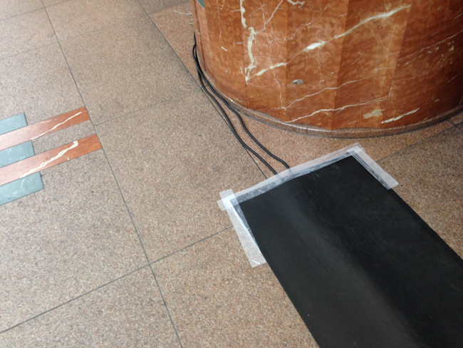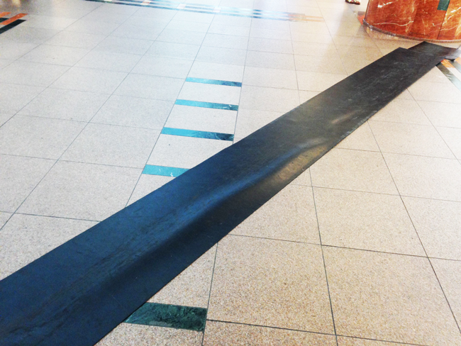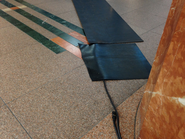 ショッピングセンター内の電源コード養生にゴムシートが便利です