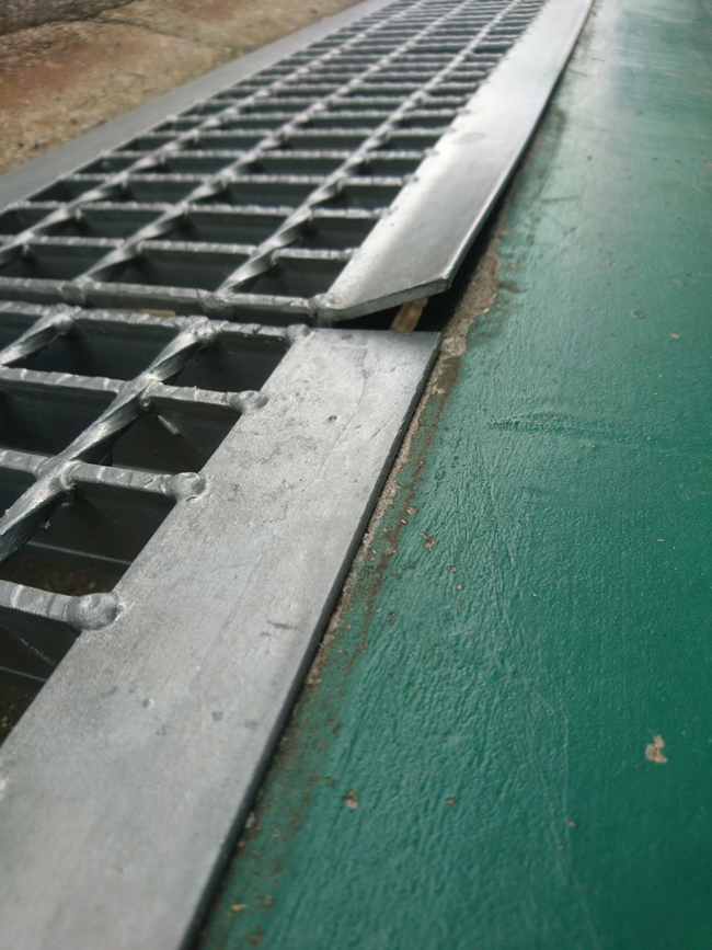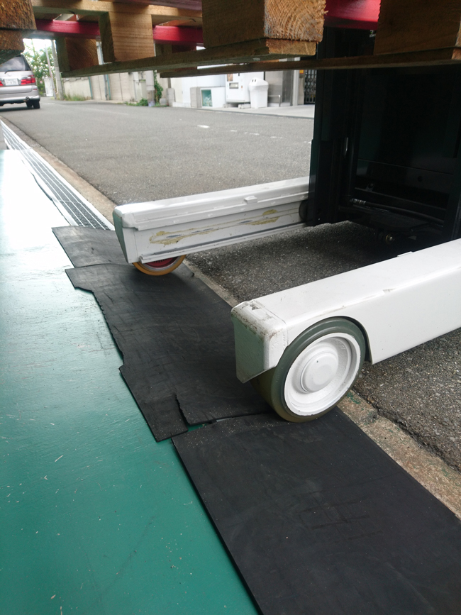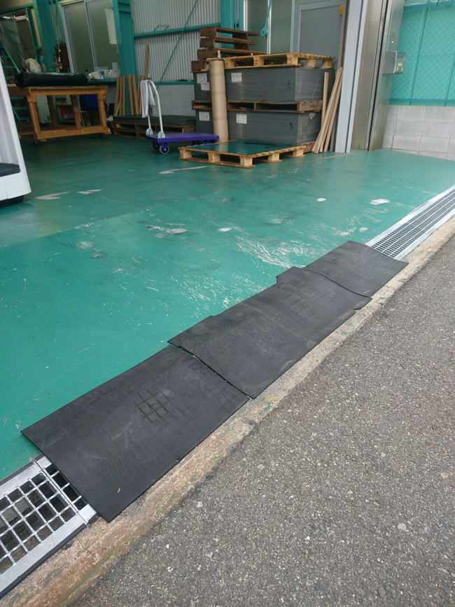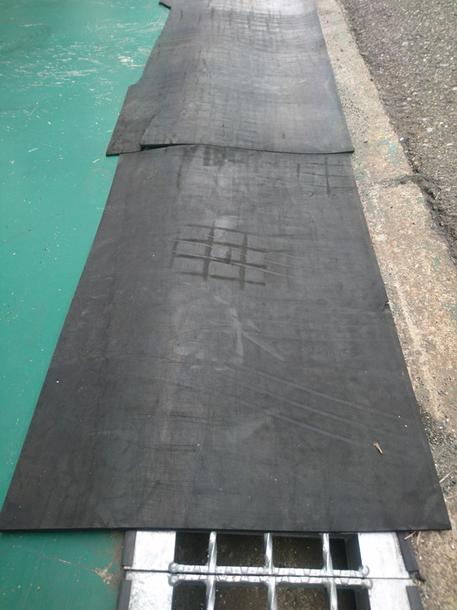 ゴムシートがない状態で重いフォークリフトが何度も通行すると、