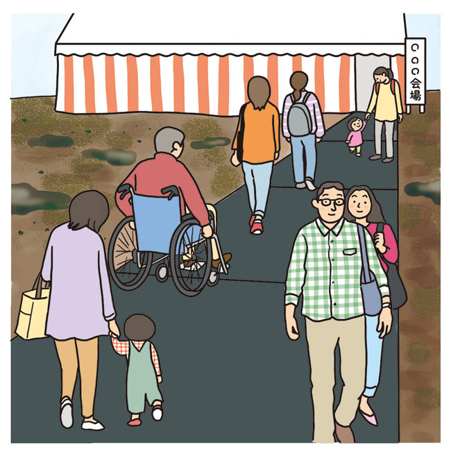 ゴムマットを敷くことで会場へ向かう道筋ができています。