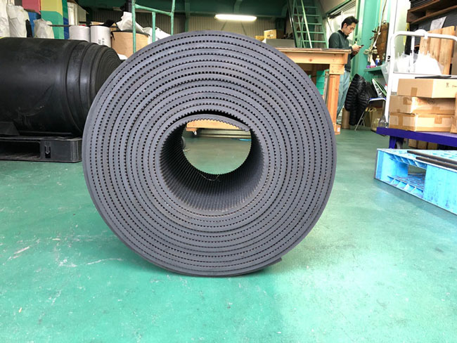 布入りで片面エンボス加工された耐摩耗性ゴムシートです。