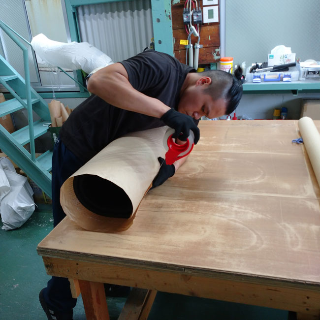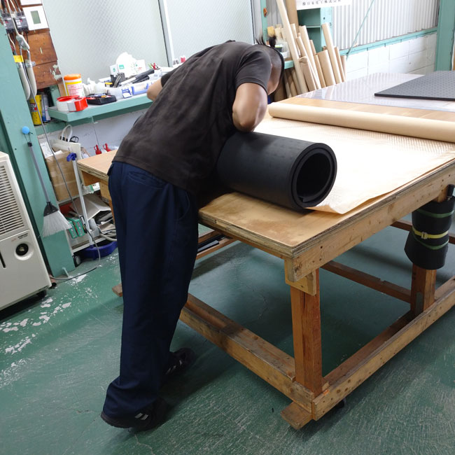 ゴムマットを切るお話が多いのですが、今日は巻くお話です。