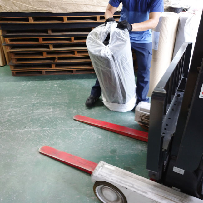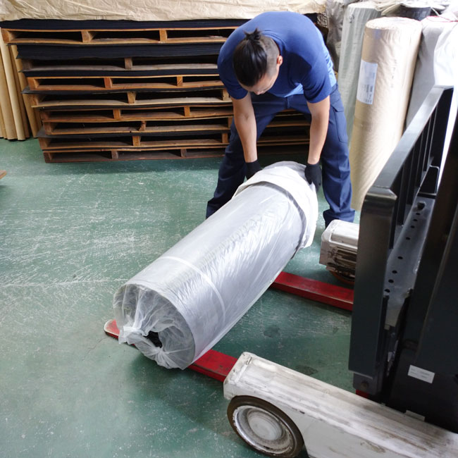 ゴムシート.comの物流センターでは上のような動きを1日に数えきれないほど繰り返し行っています。しかし、これは必要な動作なのです。重いゴムはこのように慎重に扱わないと大きな事故につながるため作業のショートカットをせずに行っています。「すぐに出荷!」のゴムシート.comなので無駄な時間を使うわけにはいかないのですが、これは必要な時間だということです。安全第一でございます。