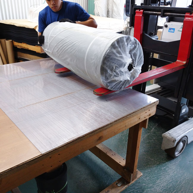 【ゴムシート.comの日常】重いゴムは無理せずフォークリフトで作業台にあげる