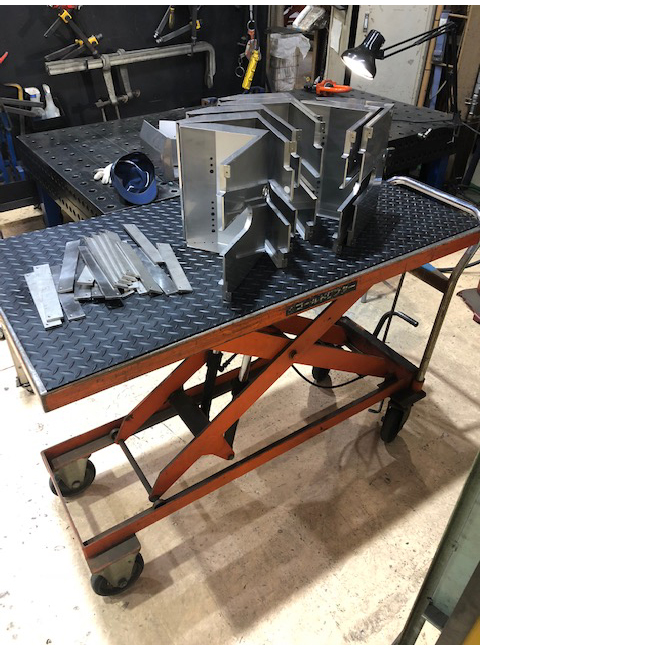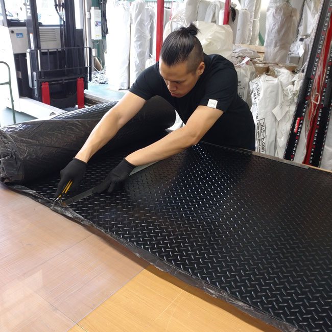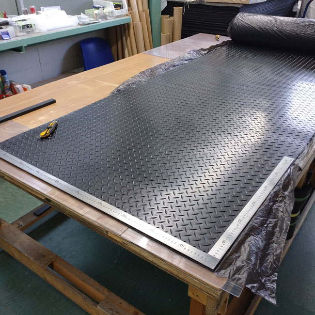 ハンドリフターの天板に滑り止め目的で縞板ゴムマット