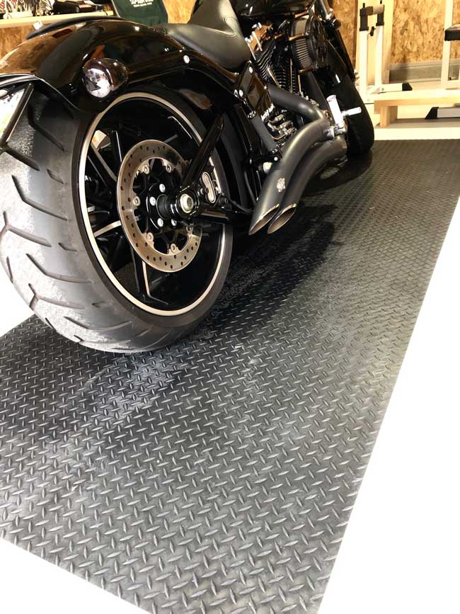 個人様 ご自宅のバイクガレージの装飾、キズ防止に ゴムシートの使用事例写真
