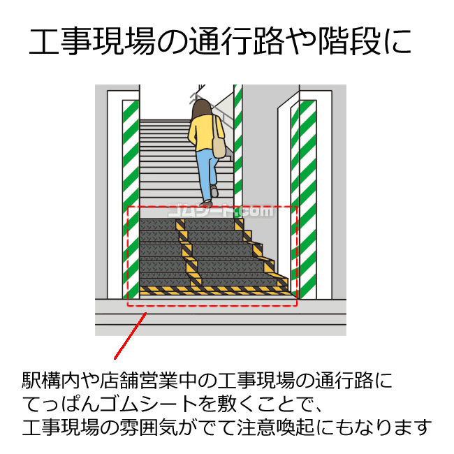【商品紹介】工事現場の歩行路に最適 てっぱんゴムシート 注意喚起!