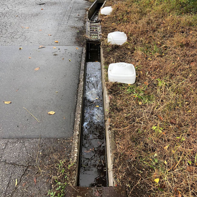▽設置現場 むきだしの溝で危険です