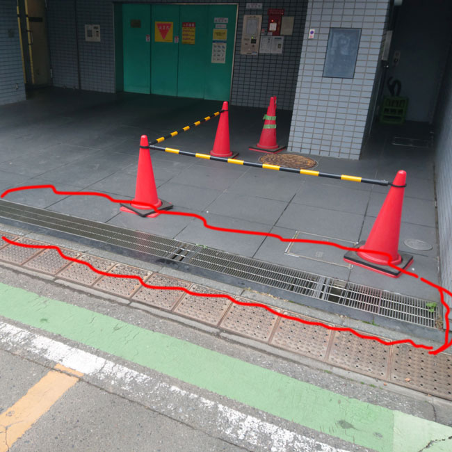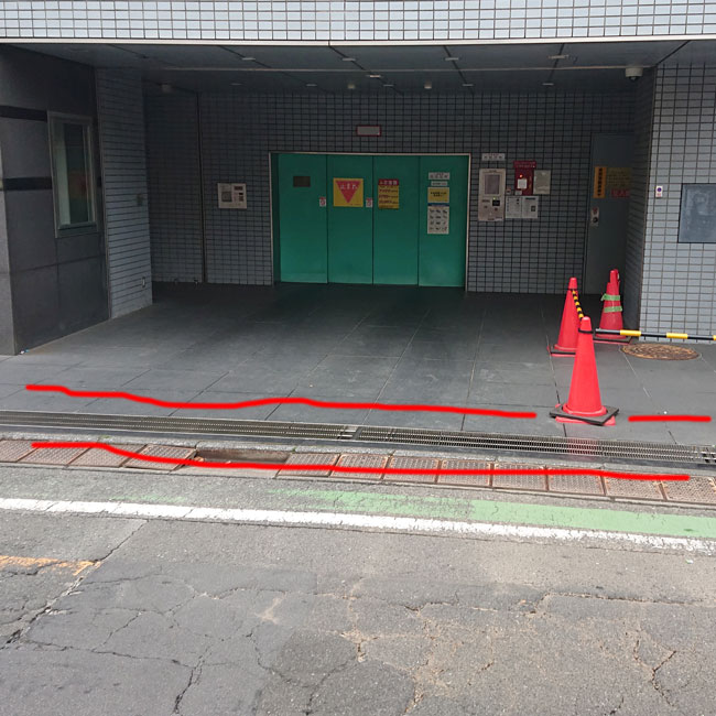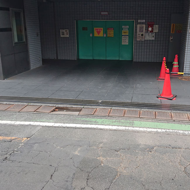 立体駐車場の出入り口に縞板貼りのグレーチングを設置していただきました