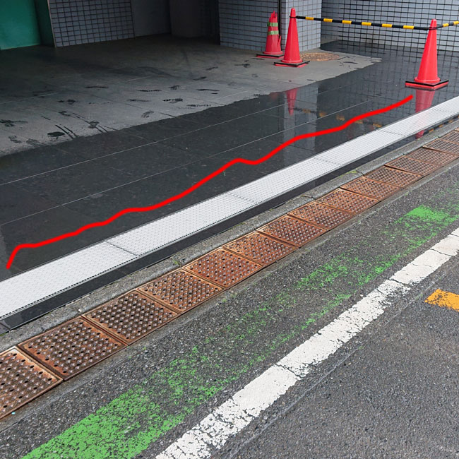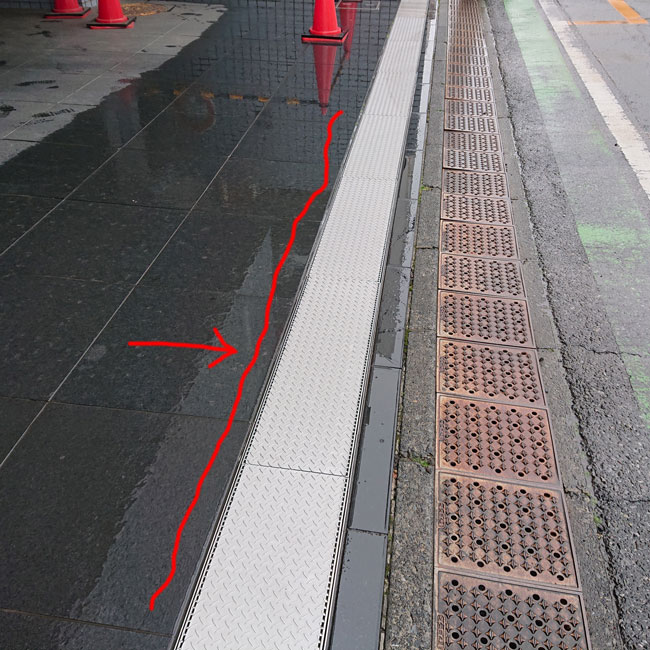 グレーチングそのものの高さ35mmありますのでT-14強度あるのですが、さらに縞板を貼っているので、バラバラになりにくい特徴があります。使用場所に応じた非常に安心なグレーチングをお選びいただきました。出入り口付近なので目に触れるところですが、ステンレス製のため美観にも優れており、建物全体のイメージアップにもつながるのではないでしょうか。