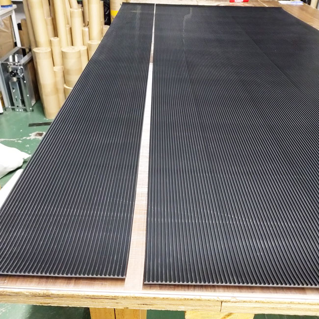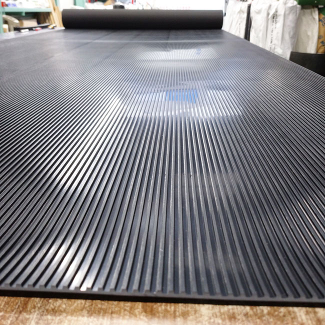 在庫品ではないですが、お問い合わせの多い筋入りゴムシートのご紹介です。在庫品ではない場合はご注文後に材料を仕入れて私たちがご指定通りにカットして出荷しています。そのため、在庫品よりも納期がかかります。