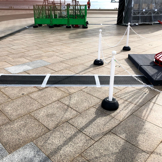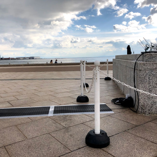 屋外イベントの電源ケーブルを保護する目的でゴムマットが使われています