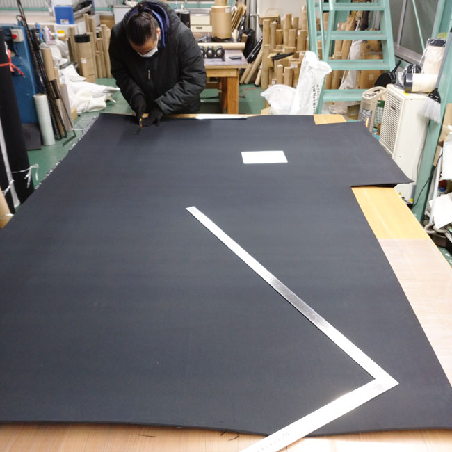 ▽ザクっとしかお見せできませんが、機械に載せられない大きなサイズを手加工でカットしています。正確な寸法にカットするのは見た目以上に大変な作業なのです。