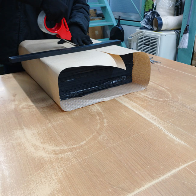 上の道具があればほぼ問題なくゴムシートをカットできます。ただし、業務目的で速度と正確さが求められカット枚数が多い場合には大きめの差し金や定規が必要になってきますので、今回は個人様向けの記事と言うことでご理解ください。