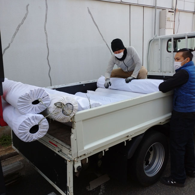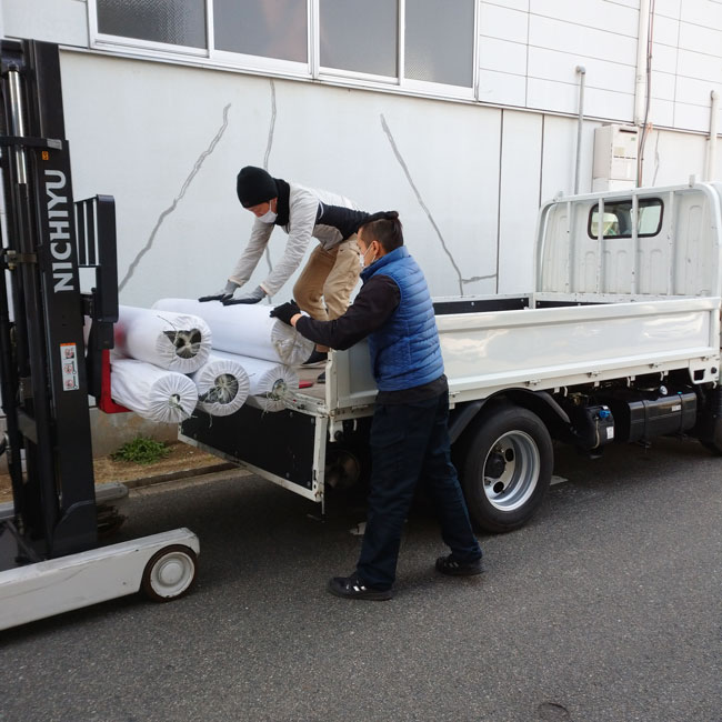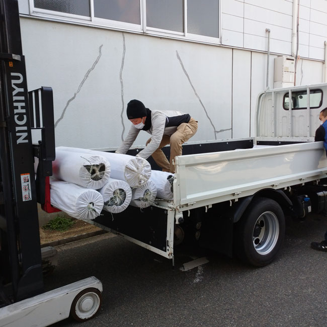 トラックによる自社便配達をすることがあります。行ける範囲、行けるタイミング、納品場所、納品重量など様々な条件が揃わないとトラックでの配達はできませんが、お客様とご相談の上でトラックによるお届けもしています。