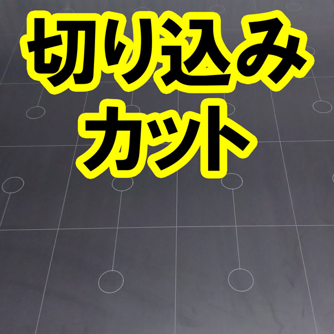 刃物1本分の切り込みなので、手で広げないと隙間なくピタッとついている状態です。切り込みだからこそ、角材やパイプを入れた後もきっちり隙間を閉じてくれるのです。切り込みの角度や距離も自在にご指定いただけます。切り込みをする目的が差し込み用なので、外周から中抜きへの直線であることがほとんどです。