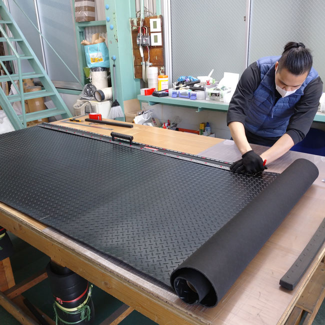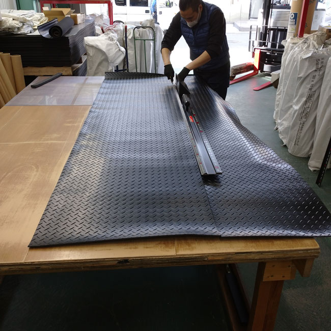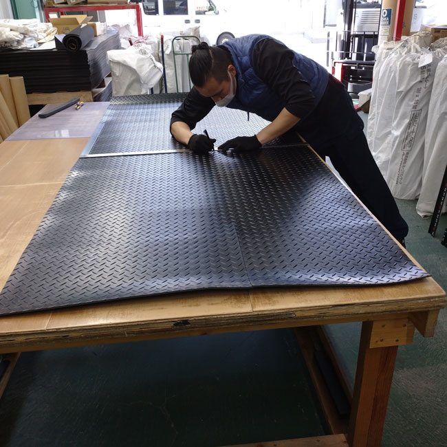 毎日たくさんのゴムシートをカットして出荷しております。ご注文をいただきありがとうございます。このブログで紹介している事例ではない、長さカットのみの出荷がほとんどです。いわば長さカットして梱包して出荷と言う流れがゴムシート.comの日常です。今日はそんな日常の1コマで長さカット+幅カットを手作業で行っている様子をご紹介いたします。