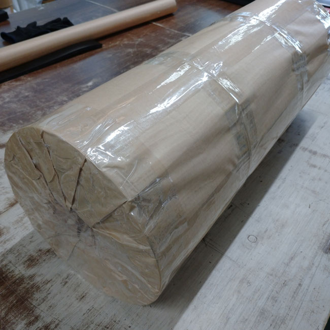 ▽ 幅は短くなりましたが、長尺品のため巻いて梱包します。