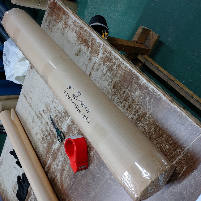 柔らかめ(軟質)のゴムシートを処分特価で販売しています。通常硬度が65度前後ですが、この柔らかめのゴムシートは硬度50度前後ですので、ハッキリと柔らかいことが分かります。ただし、スポンジのようなふにゃふにゃな柔らかさではありません。通常のゴムシートとの使い分けが難しいですが、柔らかめのゴムシートは巻き癖がつきにくい(解消しやすい)ので、平らなところですぐに使っていただけるかと思います。