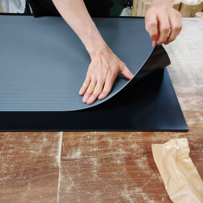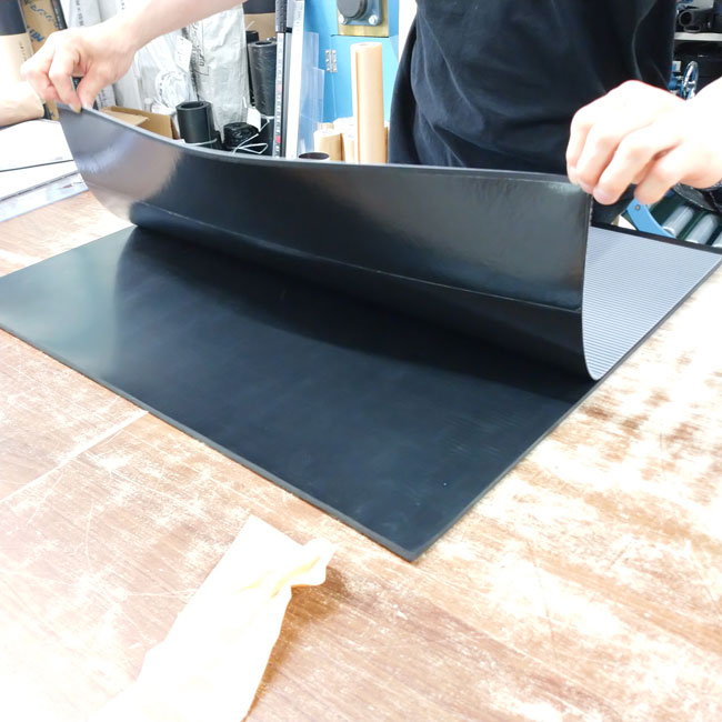 ゴムシートを貼り合わせて、規格にない厚みをつくれます
