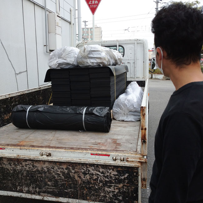 4件の配達に行かせていただきました。内容は様々ですが、総重量1,500kgくらいでした。毎日、自社ドライバーの配達便があるわけではないので、「タイミングがあえば」の制約付きにはなり、近くても行けない場合や、少し距離があっても行ける場合など、こちらの都合で申し訳ございませんが、自社便での配達も行っております。