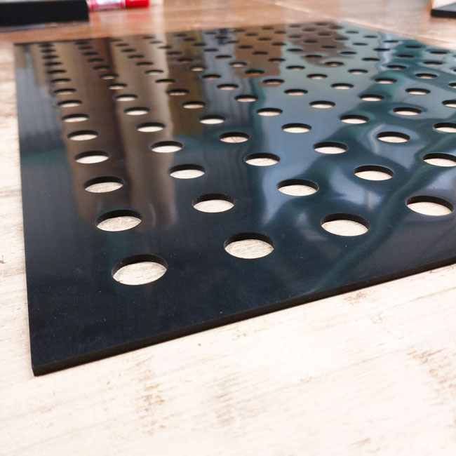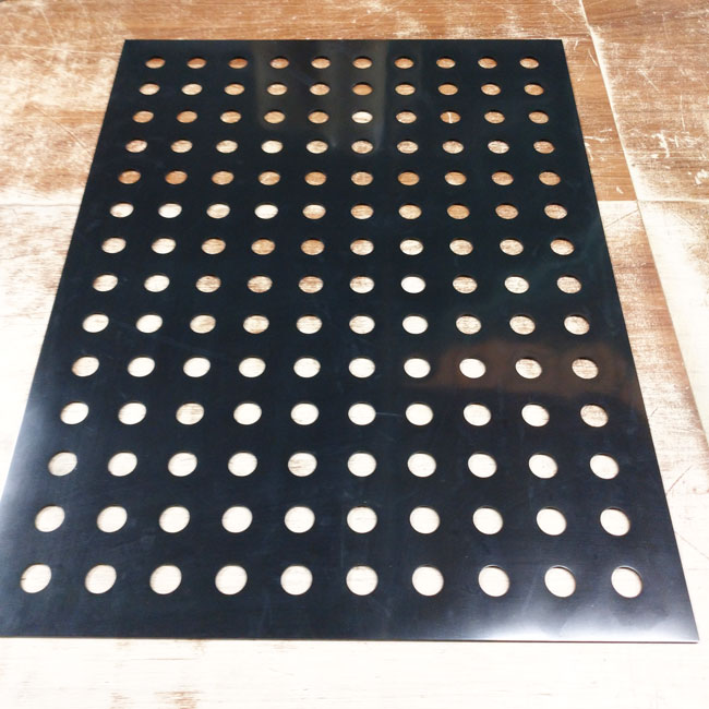 穴あけのお仕事をたくさんいただきますが、穴数が多い事例のご紹介です。穴数と穴径で加工賃が変わりますため、今回のように穴数が多い場合はどうしても単価が上がってしまいますが、抜型を使わずに加工できますので、抜型代が不要で1枚からのご注文も承っております。ボルト穴ではなく、穴位置(穴サイズ)が特に決まっていない場合には、穴をあける目的をお教えいただきましたら、加工図面のご提案も可能です。お気軽にお問い合わせくださいませ。