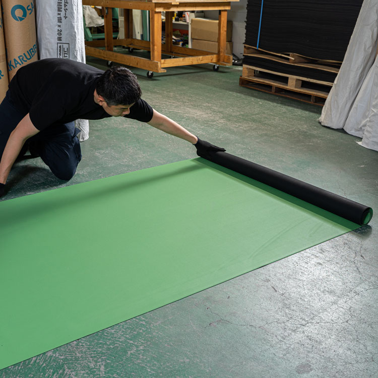 →最大厚さ2mmまでしかありませんのでトラックの荷台には薄いですが、ハイエースやキャラバンの荷室に使われる場合には厚さ2mmでも充分に使えます。ワゴン車などでロードバイクやスポーツの備品などを積まれる際にも合成ゴム両面エンボスがオススメです。