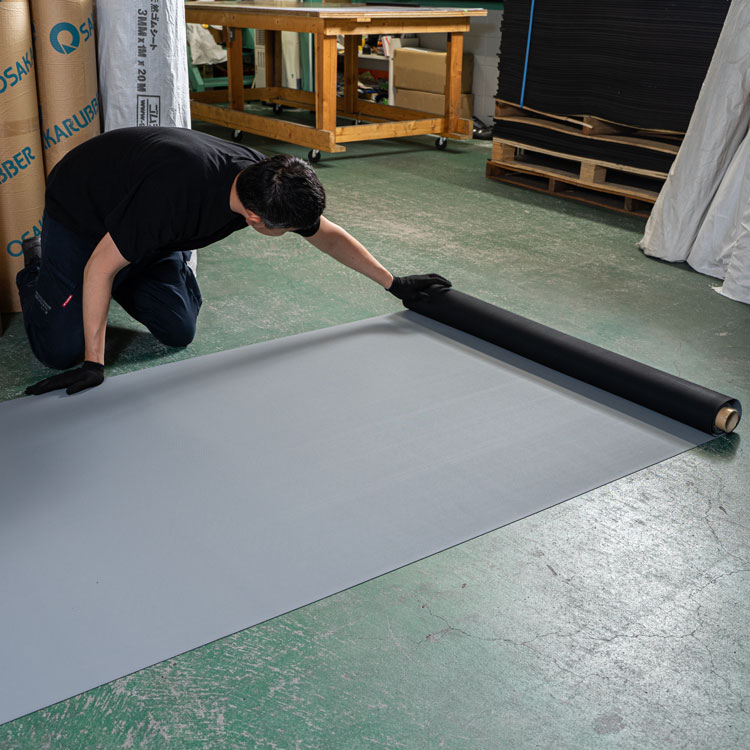 前述しましたが、臭いがしないため、ペットケージの下敷き、階段の滑り止め、スロープの滑り止め、エレベーターマット、屋上防水、ベランダ防水、ハイエース(など)の荷室マット、屋内ケーブル養生、飛沫防止パーテーションの滑り止めゴムなどによく使われています。