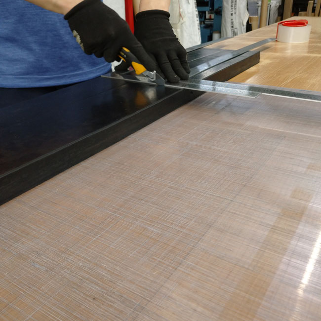 厚物ゴムを角材(角棒)のようにカットすることで、台車やロール材の転がり止めになります。私たちがゴムシートを配達する際もロール状にしていますため、転がり止めにゴムの角棒を使っています。