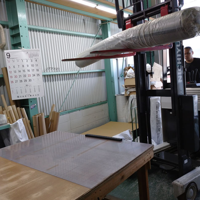 ▽ 写真は厚さ3mmですが90kgありますため、持ち上げるのはフォークリフトが必要です。