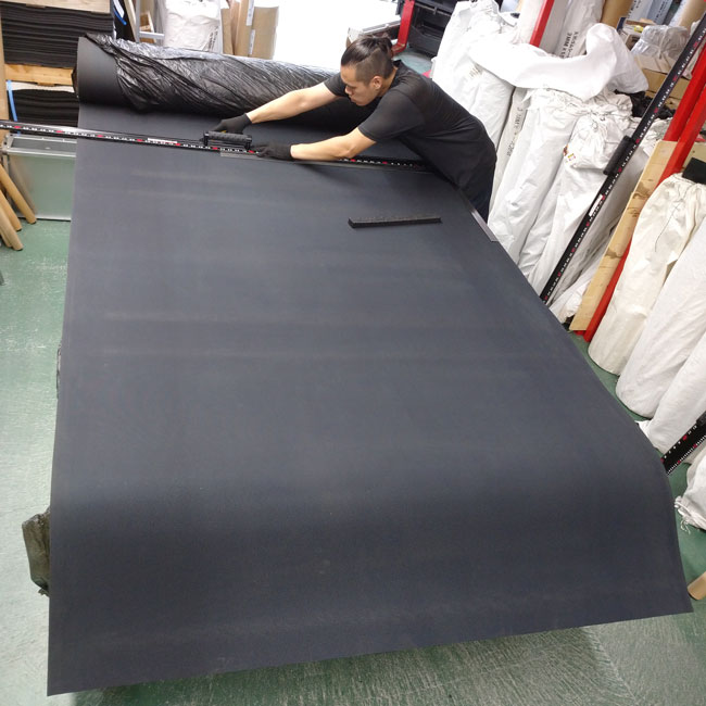 ゴムシート.comではゴムシートを荷台に敷くトラックマットが人気です。特に2トン車に多い1600幅のゴムシートは珍しいため、最もよくご依頼をいただきます。従来は厚さ3mmまたは5mmのみでしたが、10mmも新たに加わりました。10mmをご希望の方はすべて2枚分割のご提案をしておりましたが、今後は1600mm以内はすべて1枚もので納品できます。かなりの重量感がありますが、しっかりとした厚みがあるので安心感は抜群です。