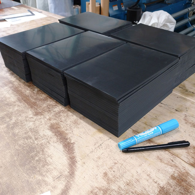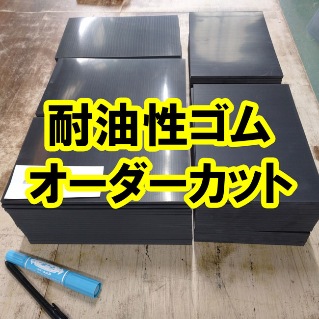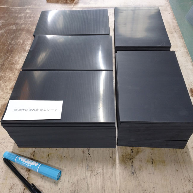 何度かご紹介させていただいてますが、耐油性に優れたゴムシートのオーダーカットもしております。在庫は厚さ1mm、2mm、3mm、5mm、10mmがあり、在庫品については1~2日以内での出荷が可能です。場合によっては当日出荷も可能ですので、お急ぎの場合はご連絡くださいませ。潤滑油が付着するなど、耐油性が必要とされる場所での部材(パッキン材)などでオススメの材質です。