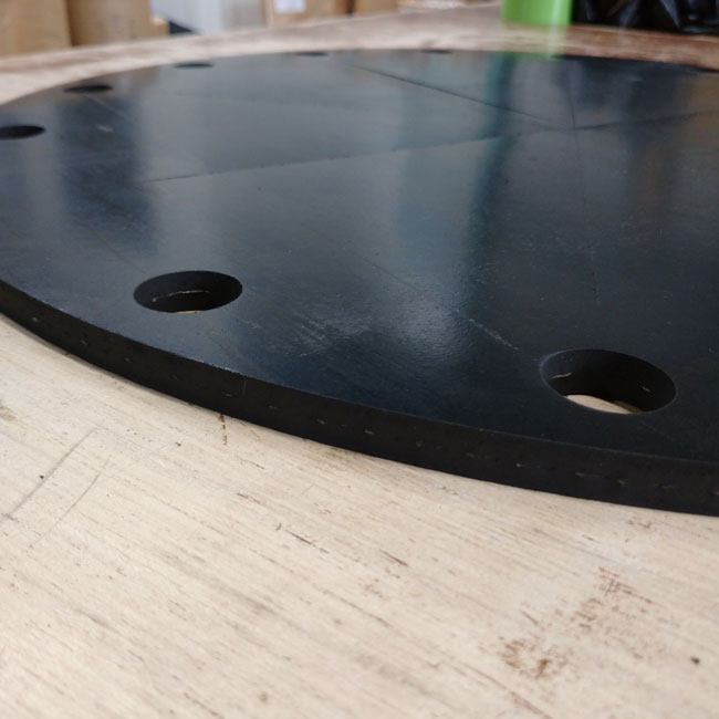 補強布入りゴムのオーダーカットも承っております。材質は天然系なので耐候性や耐油性はありませんので、要件の厳しいところではオススメしておりませんが、固定用の穴あけや差し込み用のスリット加工などご指定の形状にカットして納品しております。スリットからの裂けや破れは他のゴムに比べて非常に強いです。