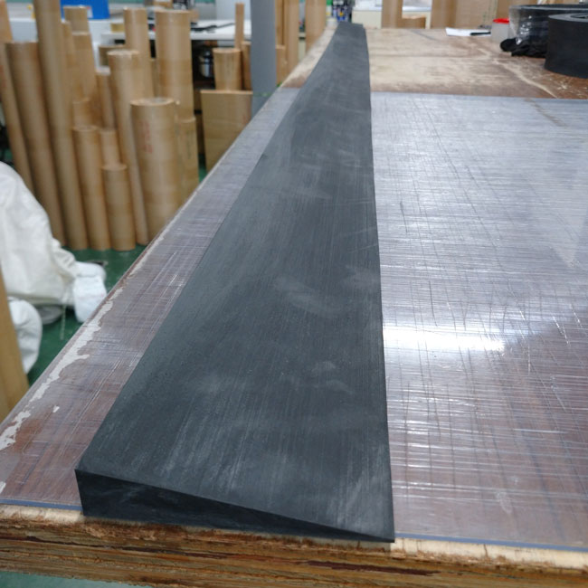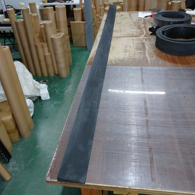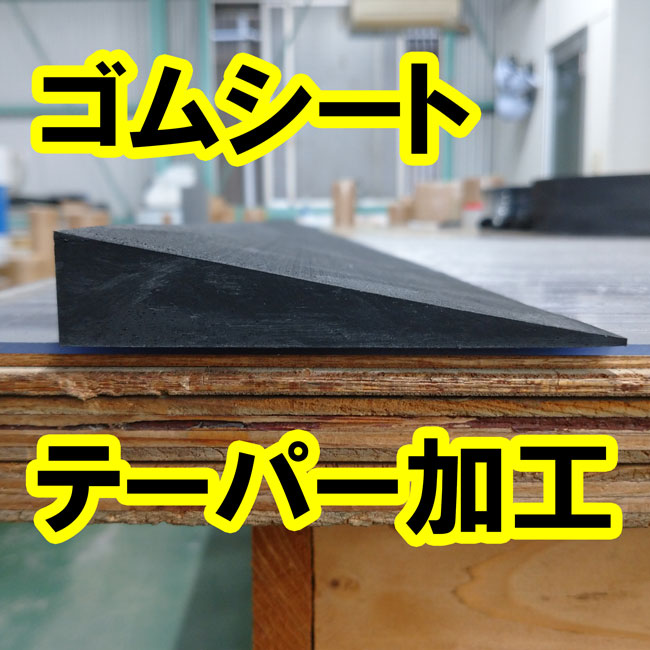 ▽ 長さ3M程度のゴムシートをテーパー加工しています。3Mをテーパー加工する例は少ないです。