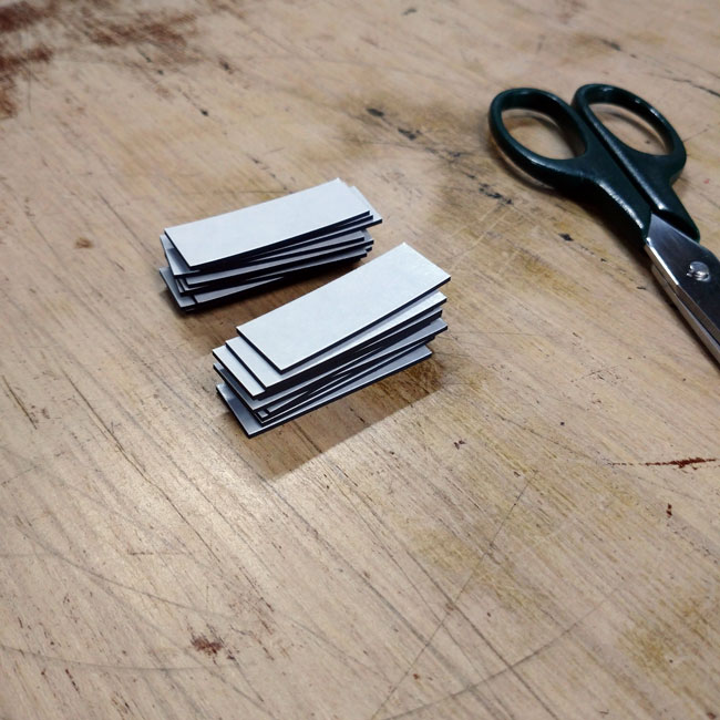 両面テープ付きは現場仕事がスムーズになります。届いて剥離紙を外すとすぐに貼り付けられます。現場でテープを貼りつけるのはテープ幅をゴム幅に合わせるなどの作業が思ったよりも大変でして、貼りつけることが決まっているお仕事ならテープ付きでご依頼いただく方が良いかと思います。ゴムシートの寸法と枚数にもよりますが、本日ご紹介するようなサイズと枚数だと早ければ当日、遅くても翌日には出荷することができます。